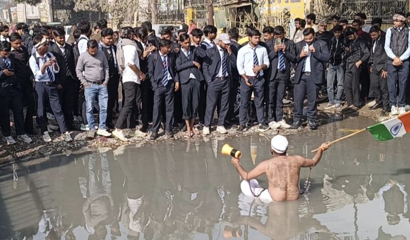 मुज़फ्फरनगर। शहर के परिक्रमा मार्ग की बदहाल हालत ने गुरुवार को एक युवक को ऐसा तरीका अपनाने पर मजबूर कर दिया, जिसने प्रशासन का ध्यान झकझोर दिया। विजय हिंदुस्तानी नामक युवक ने सड़क पर भरे गंदे, बदबूदार पानी में उतरकर विरोध दर्ज कराया और बेड़ियां पहनकर प्रतीकात्मक प्रदर्शन करते हुए कहा कि “जब सड़कें कैद हैं, तो हम कैसे आज़ाद कहे जाएं