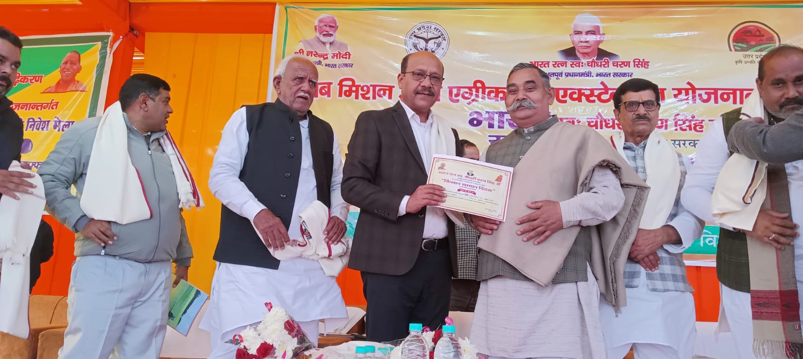 कार्यक्रम के दौरान कृषि विभाग, मुजफ्फरनगर द्वारा ग्रामीण युवा कौशल विकास पर आधारित पुस्तक का विमोचन जिलाधिकारी एवं जनप्रतिनिधियों द्वारा किया गया। इस अवसर पर गेहूं, सरसों, धान, उड़द, प्राकृतिक खेती और मिलेट्स में उत्कृष्ट कार्य करने वाले प्रगतिशील किसानों—श्री अरविंद मलिक, श्री ध्यान सिंह, श्रीमती माया, श्री प्रदीप शर्मा, श्री धीरदत्त, श्री सुखपाल, श्री हरिओम, श्री भोपाल सहित अन्य—को प्रमाण पत्र एवं शॉल भेंट कर सम्मानित किया गया।