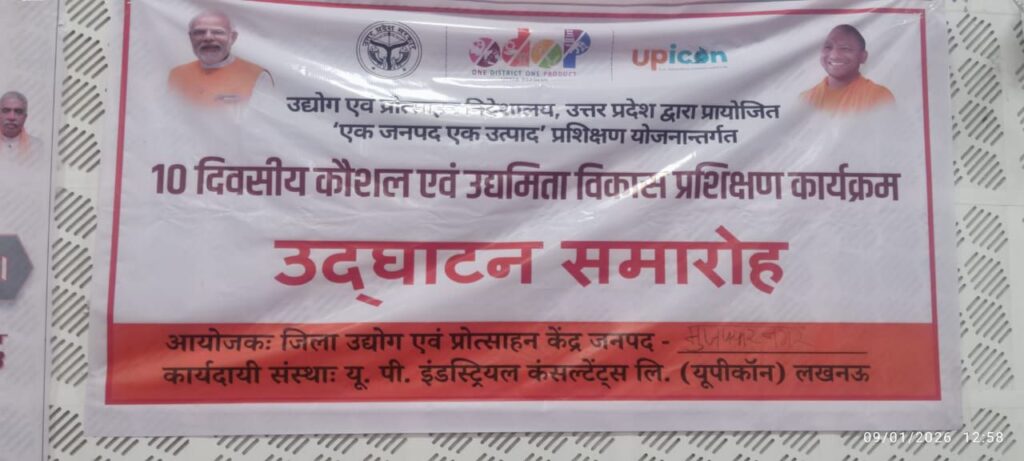 मुजफ्फरनगर। जिला उद्योग एवं प्रोत्साहन केंद्र द्वारा एक जनपद एक उत्पाद (ओडीओपी) टूल किट योजना के अंतर्गत 10 दिवसीय प्रशिक्षण कार्यक्रम की शुरुआत कर दी गई है। यह कार्यक्रम शुक्रवार, 9 जनवरी 2026 को माननीय जिला पंचायत अध्यक्ष डॉ. वीरपाल निर्वाल की गरिमामयी उपस्थिति में आयोजित किया गया।