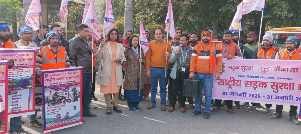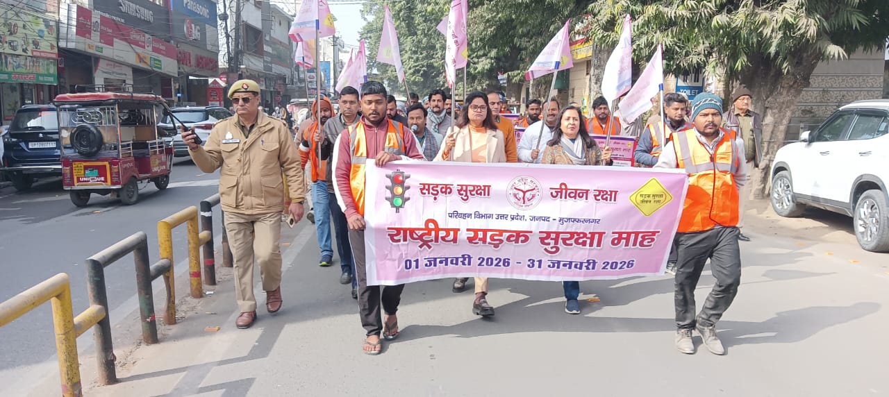 मुजफ्फरनगर। राष्ट्रीय सड़क सुरक्षा माह–2026 के अंतर्गत जनपद मुजफ्फरनगर में सड़क दुर्घटनाओं को रोकने और आमजन को यातायात नियमों के प्रति जागरूक करने के उद्देश्य से एक भव्य सड़क सुरक्षा मार्च का आयोजन किया गया। यह मार्च नगर पालिका परिषद परिसर से शुरू होकर रानी लक्ष्मीबाई स्थल, कचहरी मार्ग, प्रकाश चौक होते हुए महावीर चौक पर जाकर संपन्न हुआ।