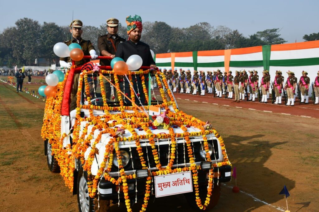 वरिष्ठ पुलिस अधीक्षक श्री संजय कुमार वर्मा ने पुलिसकर्मियों को गणतंत्र दिवस की शुभकामनाएं देते हुए निष्ठा, ईमानदारी तथा भारतीय संविधान और कानून के पालन की शपथ दिलाई। परेड का संचालन प्रथम कमाण्डर सहायक पुलिस अधीक्षक श्री सिद्धार्थ के. मिश्रा, द्वितीय कमाण्डर प्रतिसार निरीक्षक श्री ऊदल सिंह एवं तृतीय कमाण्डर महिला उपनिरीक्षक ज्योति चौधरी के नेतृत्व में किया गया।