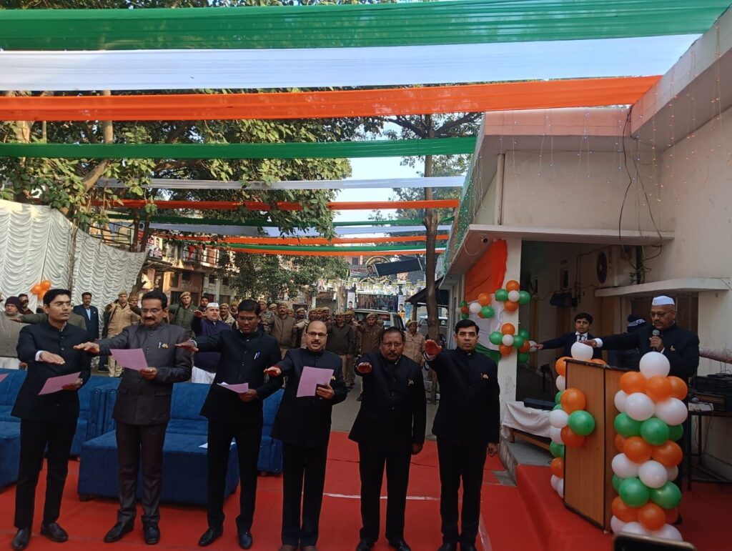 मुजफ्फरनगर | 26 जनवरी 2026। जनपद में 77वां गणतंत्र दिवस पूरे हर्षोल्लास, गरिमा और देशभक्ति के वातावरण में मनाया गया। मुख्य समारोह कलेक्ट्रेट प्रांगण में आयोजित हुआ, जहां जिलाधिकारी उमेश मिश्रा ने राष्ट्रीय ध्वज फहराया और उपस्थित अधिकारियों व कर्मचारियों के साथ राष्ट्रीय गान का सामूहिक रूप से उच्चारण किया। इसके पश्चात उन्होंने सभी अधिकारियों व कर्मचारियों को संविधान की प्रस्तावना की शपथ दिलाई।