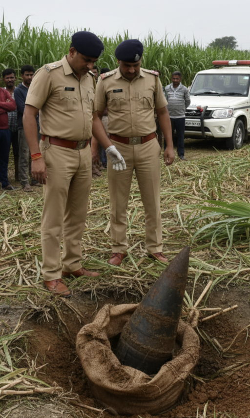 मुज़फ्फरनगर। ककरौली थाना क्षेत्र के मोरना गांव में तेवड़ा चौराहे के पास गन्ने के खेत से एक संदिग्ध लोहे की नुकीली वस्तु मिलने के बाद ग्रामीणों में दहशत का माहौल पैदा हो गया। खेत में कटाई कार्य कर रहे मजदूरों ने बताया कि मिट्टी में दबे एक बोरे से टकराने पर कुल्हाड़ी के साथ भारी धातु का टुकड़ा बाहर निकला, जिसका आकार बम जैसा प्रतीत हो रहा था। आशंका के चलते ग्रामीणों ने तुरंत पुलिस को सूचना दी।