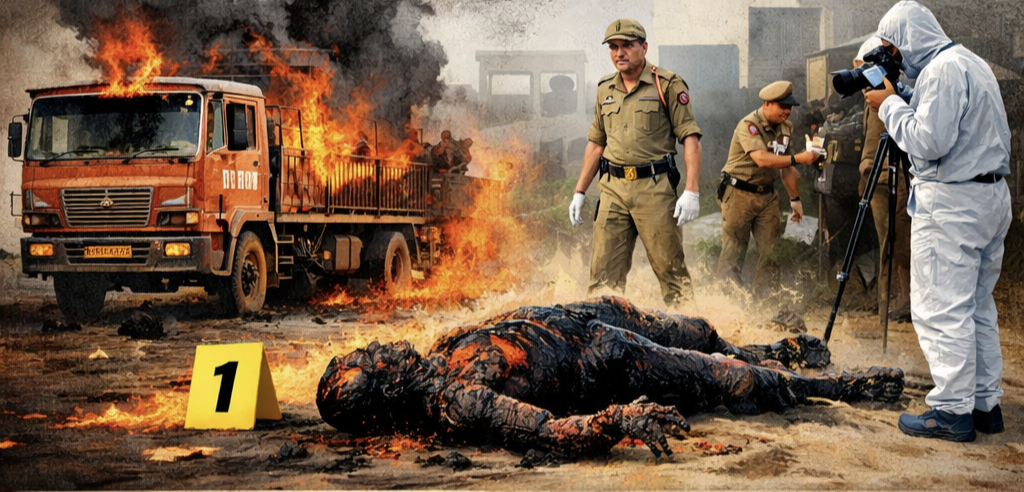 मुज़फ्फरनगर (उत्तर प्रदेश)। थाना मंसूरपुर क्षेत्र में स्थित एक हॉट मिक्सिंग प्लांट में एक दर्दनाक घटना सामने आई, जिसमें 26 वर्षीय ट्रक चालक राजकुमार गुप्ता की संदिग्ध हालात में जलकर मौत हो गई। राजकुमार मूल रूप से प्रतापगढ़ जिले का रहने वाला था और दिल्ली की एक ट्रांसपोर्ट कंपनी के लिए वाहन चला रहा था।