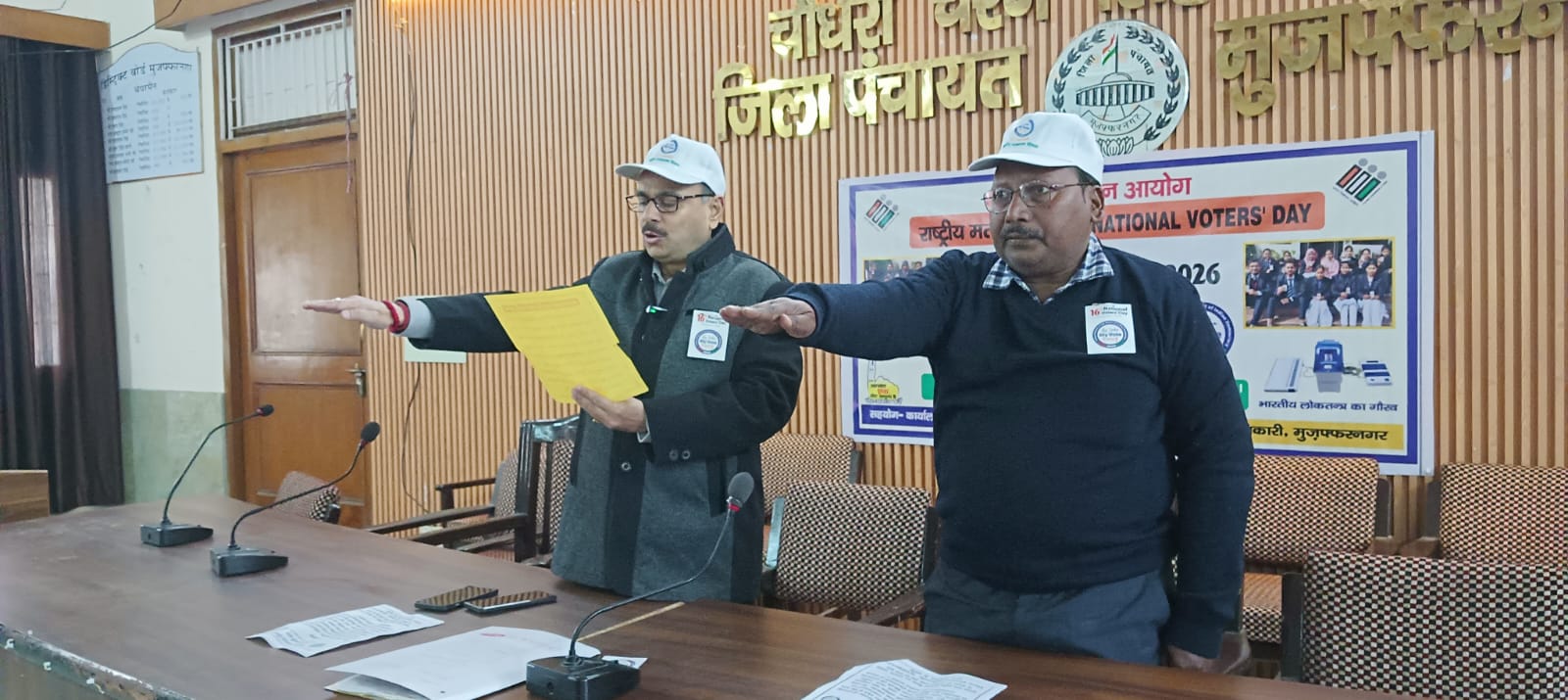 मुजफ्फरनगर, 24 जनवरी 2026। जनपद मुजफ्फरनगर में 16वें राष्ट्रीय मतदाता दिवस के अवसर पर मतदाता जागरूकता को लेकर विशेष कार्यक्रम का आयोजन किया गया। जिला पंचायत सभागार में आयोजित इस कार्यक्रम में उप जिला निर्वाचन अधिकारी/अपर जिलाधिकारी प्रशासन संजय कुमार सिंह तथा अपर जिलाधिकारी न्यायिक सुशील कुमार की उपस्थिति में समस्त अधिकारी एवं कर्मचारियों को राष्ट्रीय मतदाता जागरूकता की शपथ दिलाई गई।