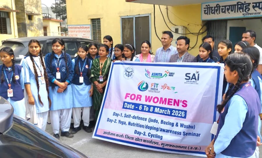 मुजफ्फरनगर के चौधरी चरण सिंह स्पोर्ट्स स्टेडियम में अंतरराष्ट्रीय महिला दिवस के उपलक्ष्य में आयोजित कार्यक्रम के तहत बालिकाओं को आत्मरक्षा का प्रशिक्षण दिया गया। ‘अस्मिता – खेल से ही है पहचान’ अभियान तथा फिट इंडिया महिला सप्ताह-2026 के अंतर्गत आयोजित इस कार्यक्रम में बालिकाओं का स्वागत फूलमालाओं से किया गया और उन्हें खेलों के माध्यम से आत्मनिर्भर बनने के लिए प्रेरित किया गया।