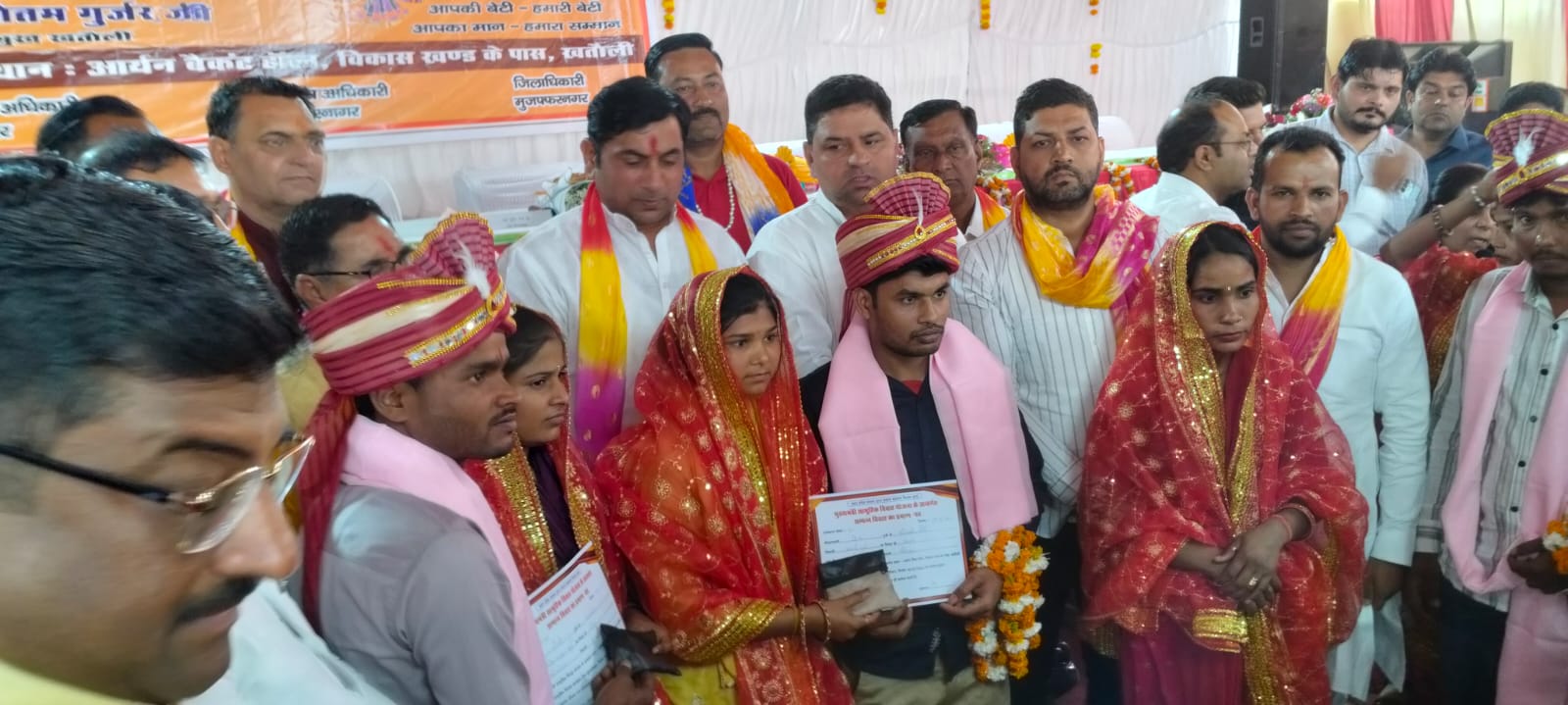 मुजफ्फरनगर, 19 मार्च 2026। मुख्यमंत्री कन्या सामूहिक विवाह योजना के अंतर्गत विकास खंड खतौली में गुरुवार को भव्य सामूहिक विवाह समारोह का आयोजन किया गया, जिसमें कुल 86 जोड़ों ने वैवाहिक बंधन में बंधकर नई जीवन यात्रा की शुरुआत की। इनमें 59 हिंदू एवं 27 मुस्लिम जोड़ों का विवाह विधि-विधान के साथ संपन्न कराया गया।