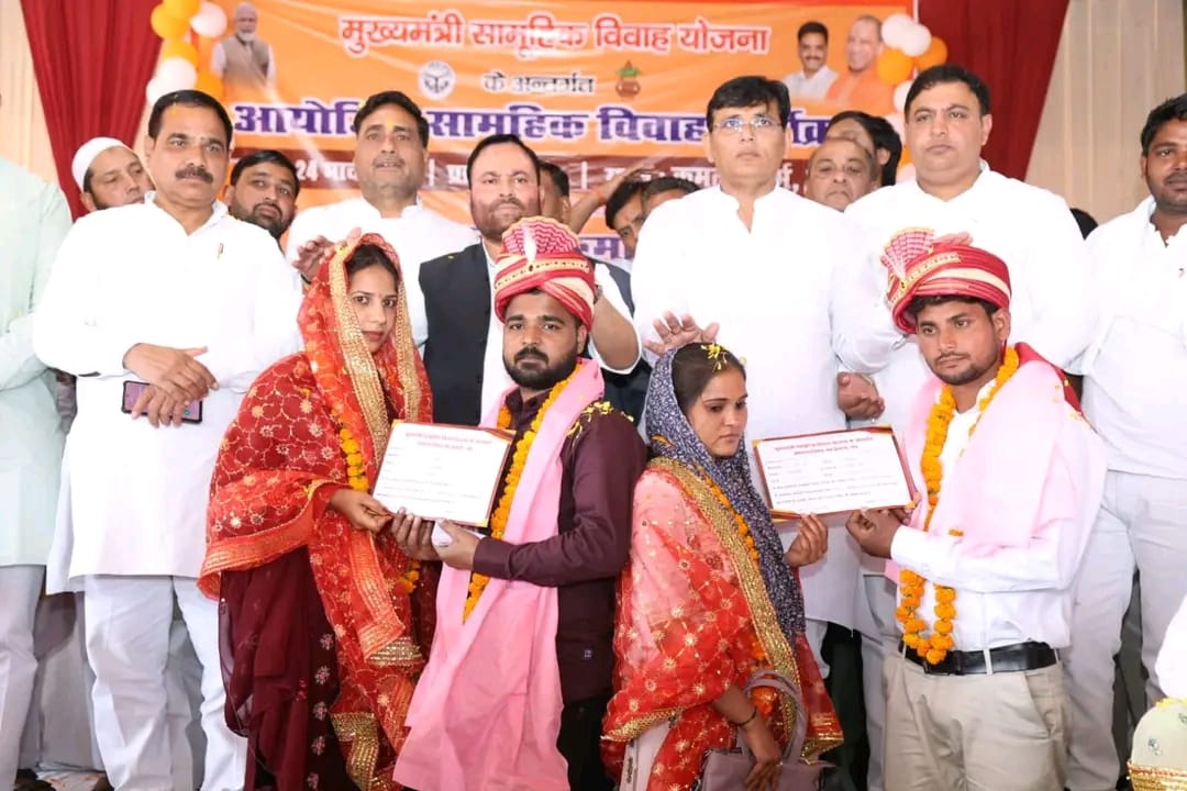 मुजफ्फरनगर, 24 मार्च 2026। मुख्यमंत्री कन्या सामूहिक विवाह योजना के अंतर्गत विकास खण्ड चरथावल परिसर में सामूहिक विवाह कार्यक्रम का भव्य आयोजन किया गया। कार्यक्रम की अध्यक्षता उत्तर प्रदेश सरकार के विज्ञान एवं प्रौद्योगिकी विभाग के माननीय मंत्री अनिल कुमार ने की, जहां कुल 91 जोड़ों का विवाह संपन्न कराया गया।
