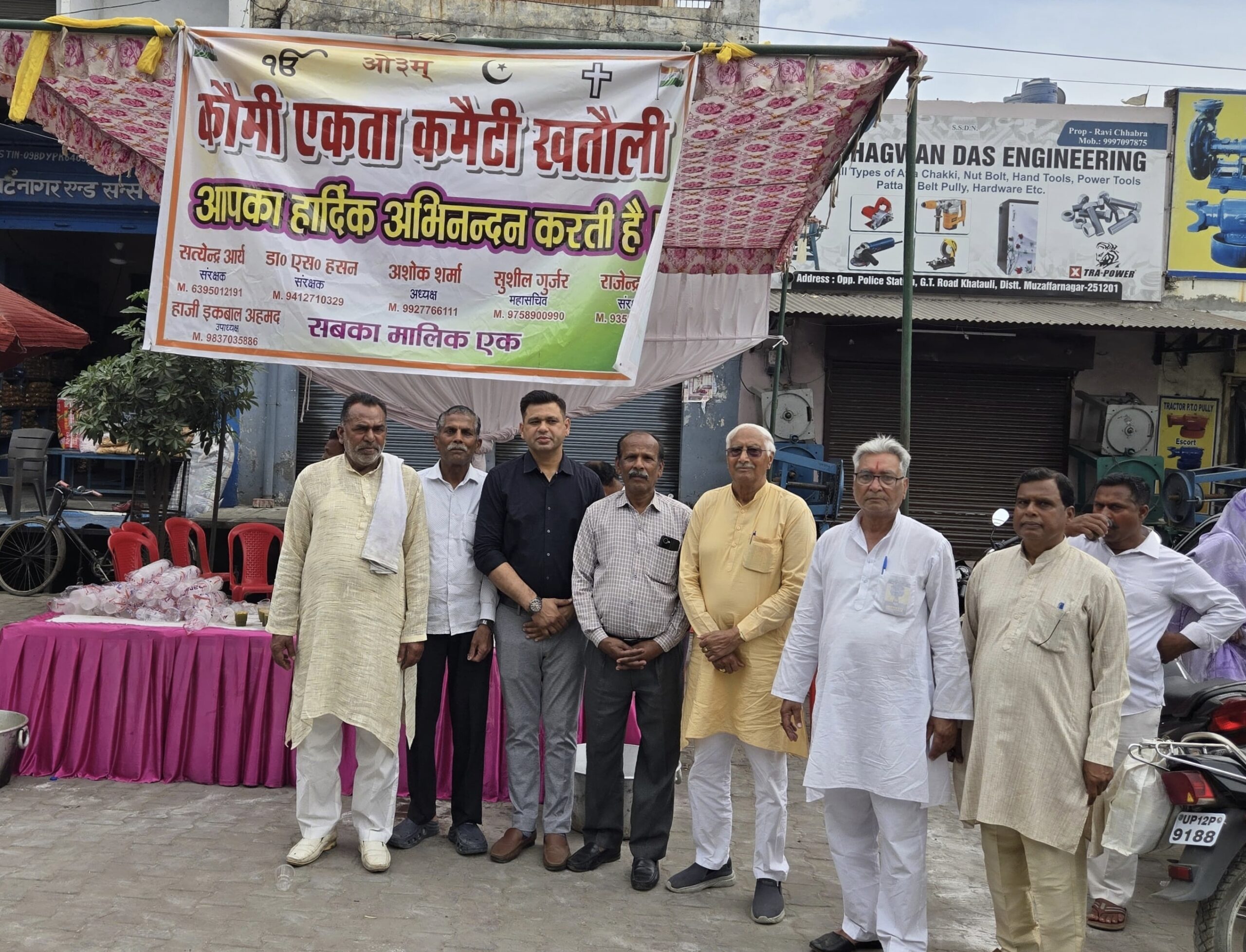 खतौली(आकाश तायल)। 30 मार्च 26। महावीर जयंती के पावन अवसर पर नगर खतौली में निकाली गई भव्य शोभायात्रा का कौमी एकता कमेटी द्वारा पंडाल लगाकर भव्य स्वागत एवं सम्मान किया गया। जीटी रोड पर लगाए गए स्वागत पंडाल में श्रद्धालुओं पर पुष्प वर्षा कर उनका अभिनंदन किया गया तथा उन्हें शिकंजी वितरित की गई।