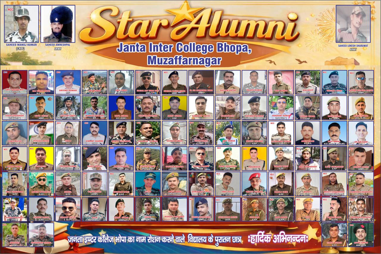 मुज़फ्फरनगर। जनता इंटर कॉलेज भोपा, मुज़फ्फरनगर के पूर्व छात्रों को सम्मानित करने के उद्देश्य से भोपा नहर पुल पर ‘स्टार एलुमनी’ सम्मान बोर्ड लगाया गया है, जिसमें उन पूर्व छात्रों के फोटो लगाए गए हैं जो भारतीय सेना, अर्धसैनिक बलों, पुलिस एवं अन्य सुरक्षा सेवाओं में रहकर देश की सेवा कर रहे हैं। यह बोर्ड क्षेत्र में आकर्षण का केंद्र बना हुआ है और लोग रुककर इसे देख रहे हैं।