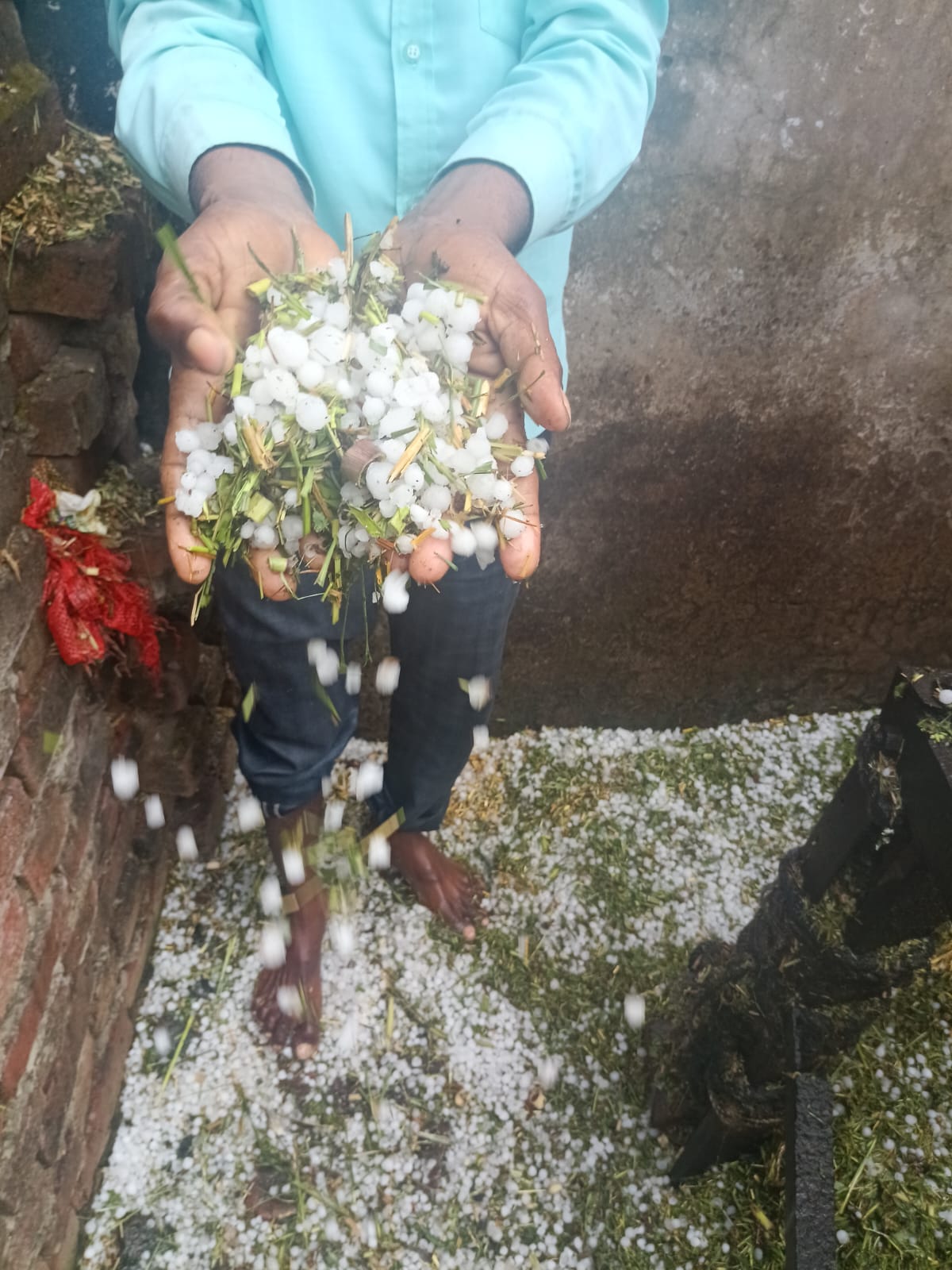 ग्रामीणों के अनुसार दोपहर में अचानक आसमान में काले बादल छा गए और तेज हवा के साथ बारिश शुरू हो गई। कुछ ही देर बाद मटर के दाने के आकार के ओले गिरने लगे, जिससे खेतों में खड़ी गेहूं की फसल झुक गई और कई जगह फसल जमीन पर बिछ गई।
