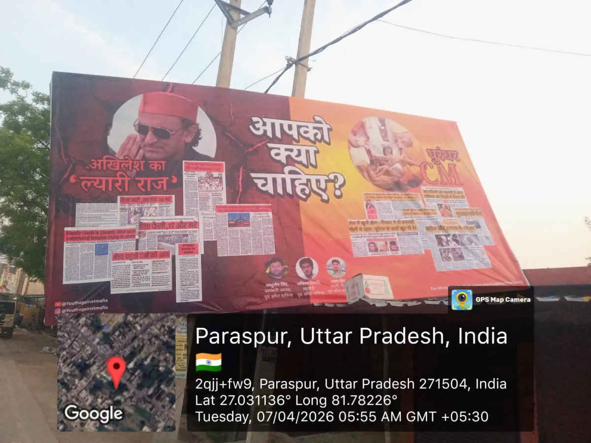 लखनऊ, 8 अप्रैल 2026। उत्तर प्रदेश में चुनावी आहट के बीच अब सियासत सड़कों पर उतर आई है। राजधानी लखनऊ सहित प्रदेश के कई शहरों में अचानक लगे राजनीतिक पोस्टरों ने नया विवाद खड़ा कर दिया है। इन पोस्टरों में एक तरफ मौजूदा सरकार की छवि को “धुरंधर” बताते हुए प्रस्तुत किया गया है, वहीं दूसरी ओर पूर्व सरकार को “ल्यारी राज” से जोड़ते हुए निशाना साधा गया है।