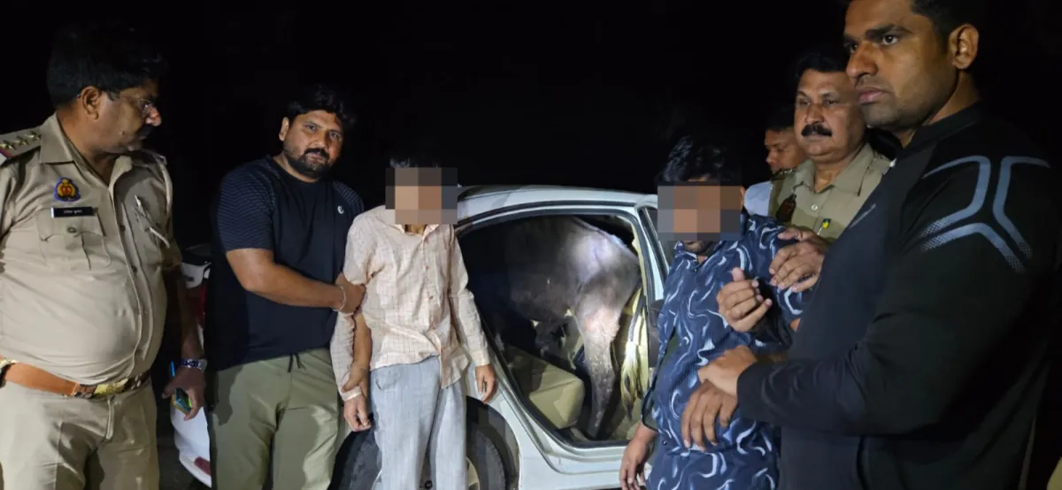 तलाशी में पुलिस को .315 बोर का तमंचा, जिंदा व खोखा कारतूस, एक छुरी, बिना नंबर की कार, एक जिंदा बछड़ा और गोकशी के औजार मिले हैं।