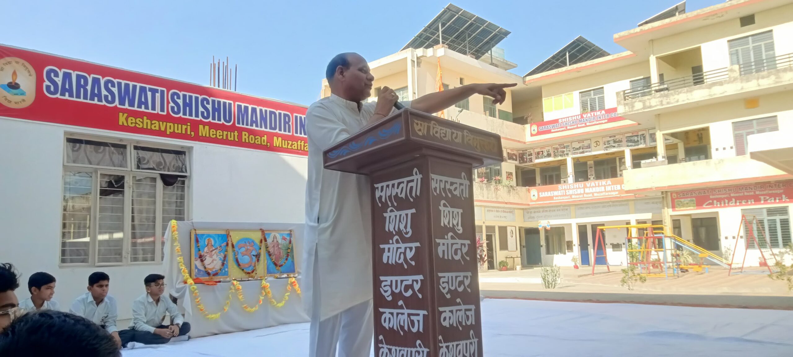 मुज़फ्फरनगर। सरस्वती शिशु मंदिर इंटर कॉलेज, केशव पुरी में आज संभाग निरीक्षक श्री जगबीर शर्मा का आगमन हुआ। उनके विद्यालय पहुंचने पर प्रधानाचार्य श्री गोविंद गुप्ता ने पारंपरिक रूप से पटका पहनाकर उनका स्वागत किया।